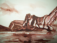 Each year I do my Christmas card using one of my paintings or drawings. This year's card was different from my usual winter landscape scene, and was influenced by my visit to the Ghost Ranch in Abiqui, New Mexico and the home of artist Georgia O'Keeffe. Her home has numerous collections of skulls, bones and rocks which she used in some of her paintings. This is my "Georgia O'Keeffe" Christmas card, adding the red Christmas bulb to my drawing.